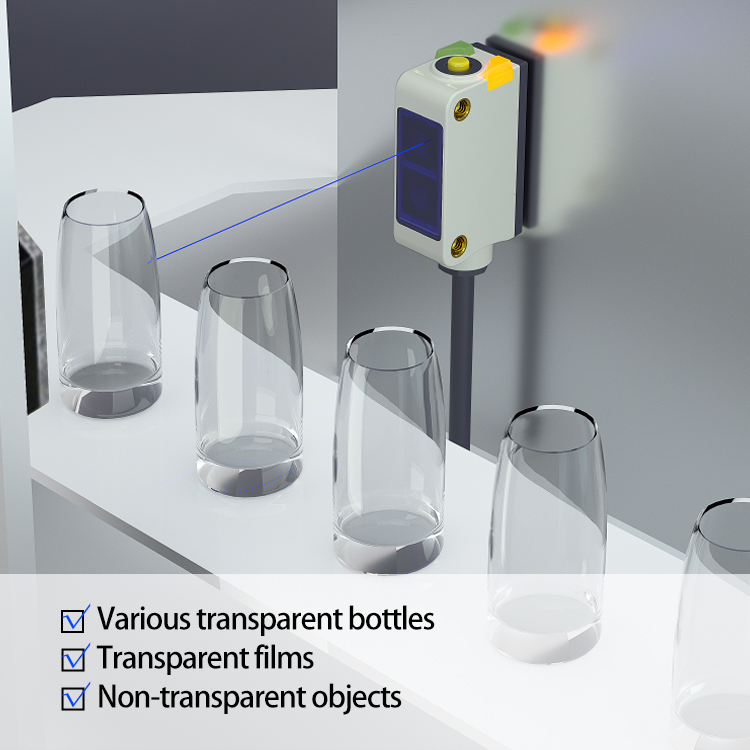 FGNE10-50NFR-T-transparent flaskdetekteringssensor har avancerad teknik som möjliggör exakt detektion av transparenta flaskor, även i utmanande miljöer. Dess förmåga att exakt upptäcka och identifiera flaskor i olika storlekar, former och material gör det till ett viktigt verktyg i olika industriella applikationer, såsom förpackningar, fyllning och sorteringslinjer.