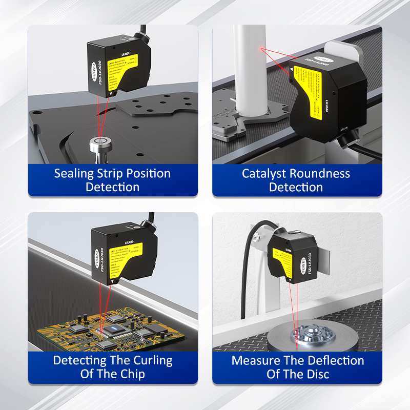 Ultra-snabb provtagningsfrekvens är också Trump-kortfunktionen i FSD-LKJ-serien höghastighetslaserförskjutningssensorer, med en provtagningsfrekvens på upp till 88 kHz, vilket effektivt kan fånga förskjutningen av snabbrörande föremål med ultrahög stabilitet. Vid tätningsremspositiondetektering kan den övervaka om tätningsremsan installation är korrekt i realtid; Vid detektering av katalysatorer kan den snabbt få formdata för katalysatorn; Och när man mäter avböjningen av den roterande skivan kan den ge snabb feedback på de dynamiska förändringarna. I denna serie applikationsscenarier säkerställer sensorn realtidsdata och noggrannhet på grund av dess ultrasnabba samplingsfrekvens, vilket avsevärt förbättrar produktionseffektiviteten och produktkvaliteten.