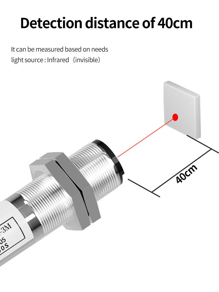 Långdiskdetektering (40 cm), robust prestanda (resistent mot komplex störningar), omfattande skydd (flera skyddsåtgärder) och hållbarhet (vattentät och oljeresistent)! Med tillförlitlighet för industriell kvalitet och miljöanpassningsbarhet hjälper det dig att bygga ett mer stabilt och effektivt automatiserat detekteringssystem.