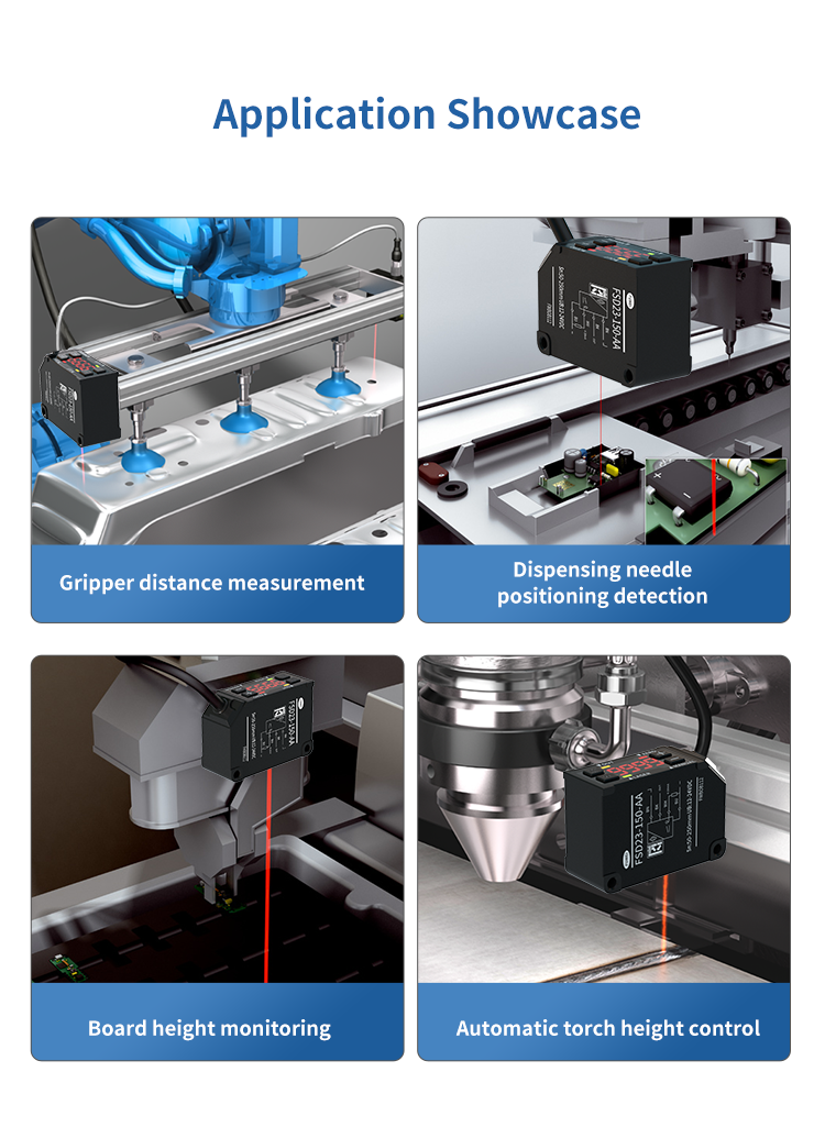Traditionella sensorer tvingas ofta att anpassa flera modeller av utrustning på grund av smalt intervall (såsom fast 30 mm detekteringsområde), vilket resulterar i en ökning av produktionslinjekostnaderna. FSD23-serie laserförskjutningssensorer inser emellertid ett kontinuerligt justerbart detekteringsområde från 10 mm till 250 mm genom självutvecklade optiska moduldynamiska fokuseringsteknologi, som är lämplig för alla scenarier som sträcker sig från mikron chiplödningsfogar till fordonsmodulen.