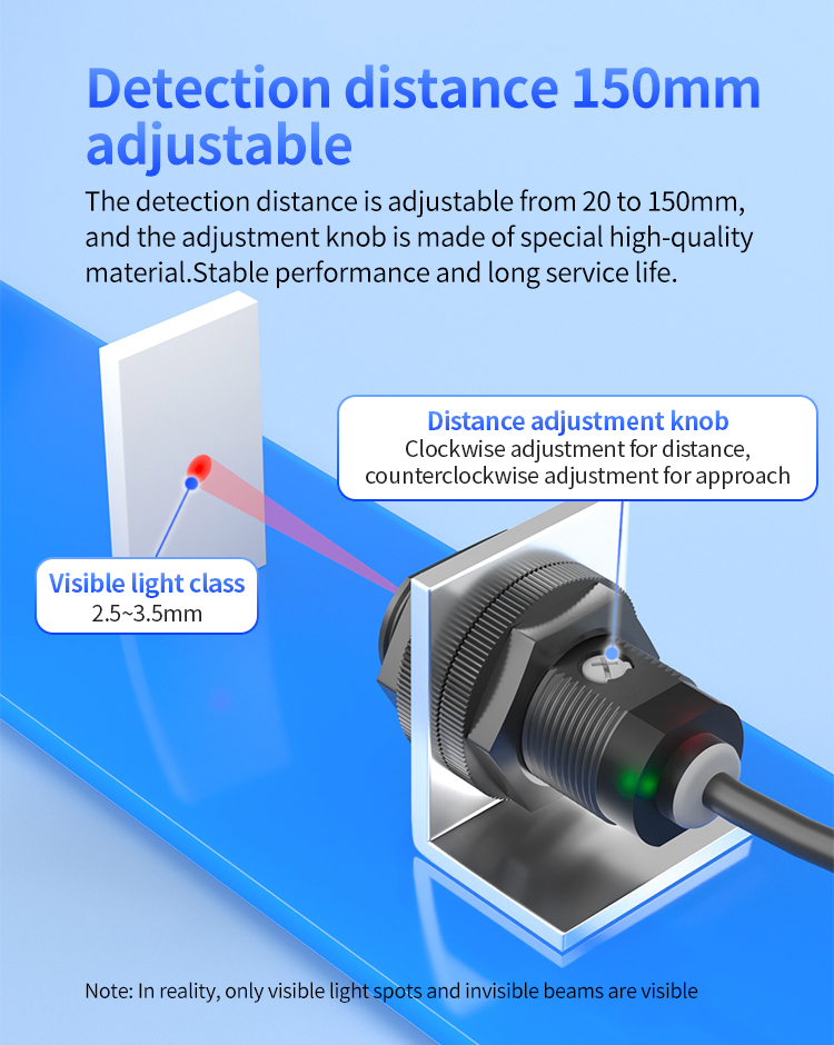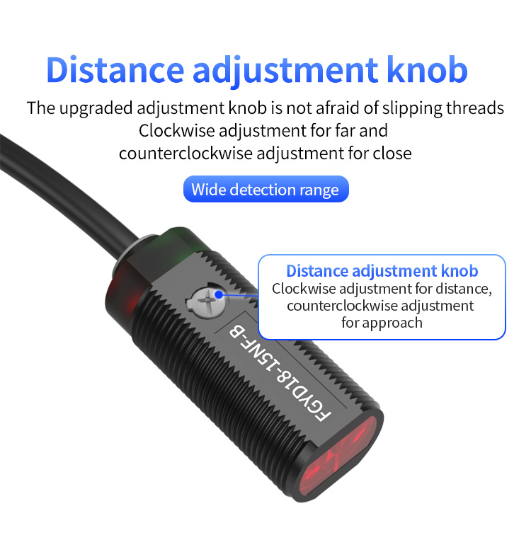 Dessutom sticker det justerbara detekteringsavståndet på 150 mm ut som en annan nyckelfunktion. FGYD18-serien erbjuder flexibel detekteringsområde-justering mellan 20-150 mm. Användare kan enkelt ställa in önskat avstånd via en högkvalitativ justeringsknapp. Denna design säkerställer stabil prestanda och förlängd livslängd och placerar den som en toppnivå precisionsfotoelektrisk sensor. Vid automatiserad inspektion är exakt distansreglering avgörande-vare sig för känslig objektpositionering eller höghastighetsmonteringslinjeoperationer ger denna sensor konsekvent svar. Föreställ dig att uppnå effektiv detektion på CNC -bearbetningscentra eller maskinverktyg utan ofta kalibrering - detta sparar utan tvekan både tid och kostnader.