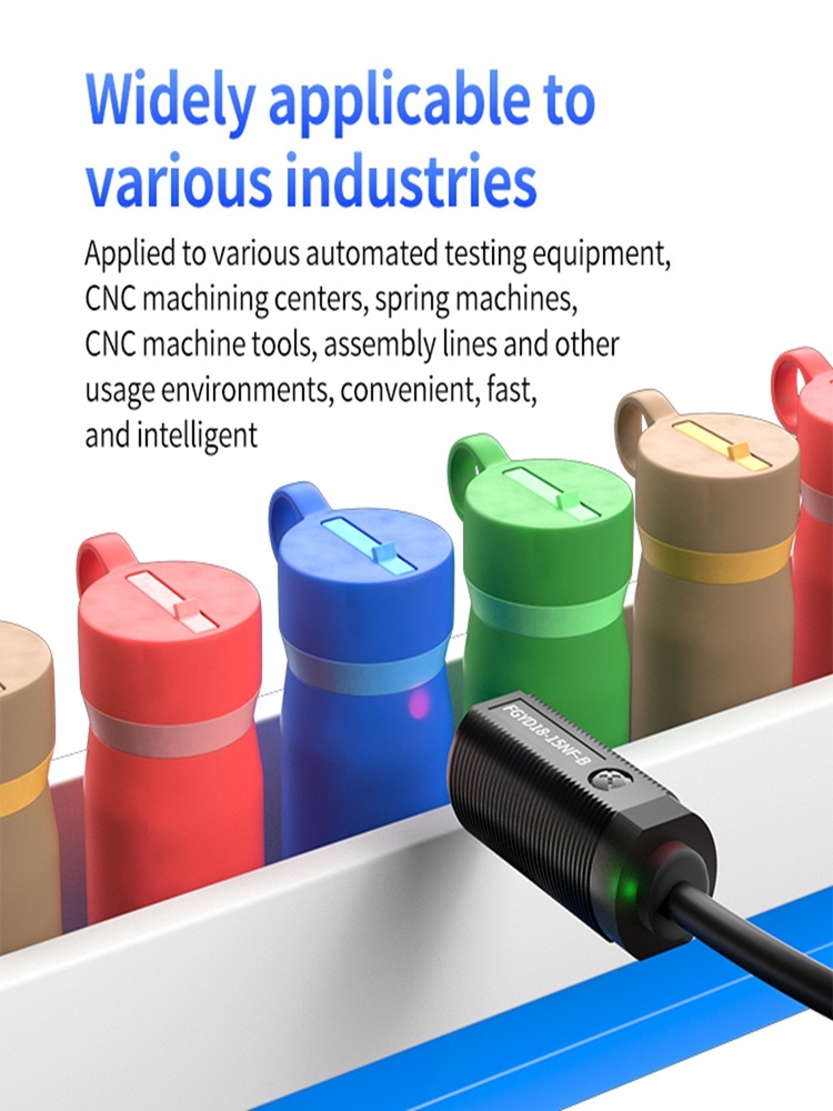 För det tredje belyser dess breda branschens tillämpbarhet dess mångsidighet. FGYD18-serien högprecisionsfotoelektriska sensorer kan användas i stor utsträckning i olika automatiserad inspektionsutrustning, CNC-bearbetningscentra, fjädermaskiner, CNC-maskinverktyg och monteringslinjer. Dess intelligenta design möjliggör snabb och enkel installation och drift och integreras sömlöst i befintliga system. Till exempel, på tillverkningsmonteringslinjer, upptäcker den positionen för minutkomponenter för att säkerställa monteringsprecision; I logistiklager förbättrar det effektiviteten hos sorteringssystem. Denna breda tillämpbarhet härrör från dess bakgrundsundertryckningsteknik och upprätthåller höga prestanda i olika scenarier för att möta olika krav.
