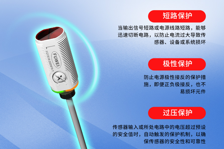 Sensorns exceptionella prestanda demonstreras först genom dess omfattande trippelskyddssystem. I händelse av utgångssignalskort kretsar eller kortslutning av kraftledningar kan enheten koppla bort kretsen inom millisekunder, vilket effektivt förhindrar aktuell överbelastningsskada på systemet. En unik design för polaritetsskydd säkerställer att även om operatörerna av misstag vänder kraftförsörjningspolariteten förblir sensorns kärnkomponenter intakta. Överspänningsskyddsmekanismen aktiveras automatiskt när ingångsspänningen överskrider förinställda säkerhetsgränser, vilket ger omfattande skyddsåtgärder för stabil drift i komplexa industriella miljöer.