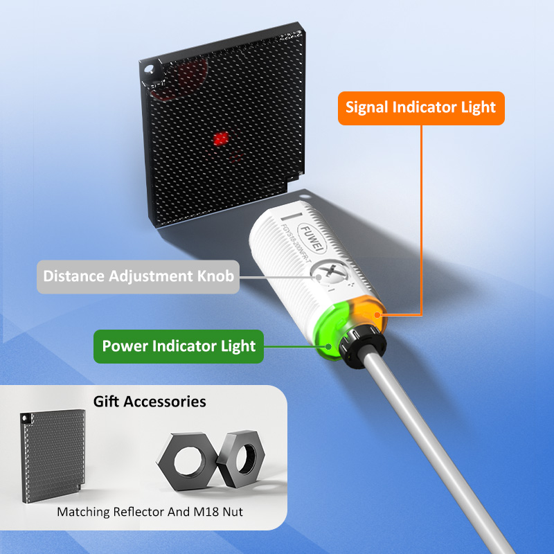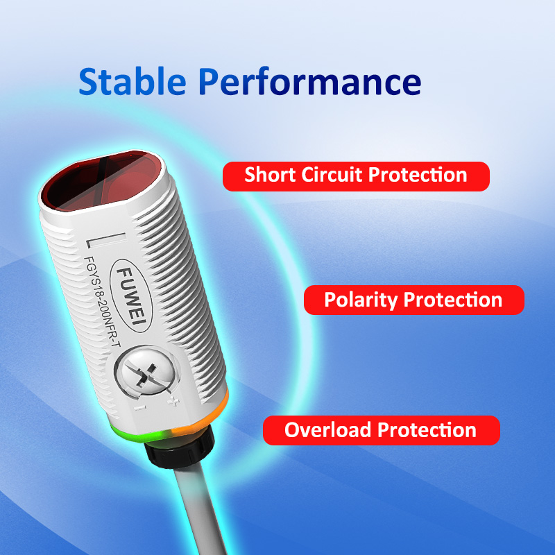 FGYS18-200NFR-T professionell transparent flaskdetekteringssensor använder avancerad linsreflektionsprincip och belagd optisk filterteknik för att effektivt lösa utmaningar för detektering av transparenta behållare. Den har ett 2-meters justerbart detektionsområde med synlig röd ljuspunkt för exakt positionering. Utrustad med trippelskyddsmekanismer (kortslutning, omvänd polaritet och överspänning) och kvartslins som är motståndskraftig mot termisk deformation, säkerställer den stabil optisk sensor Transparent Object Detection Mirror Reflection M18 2m Detektionsavstånd Cylindrical Sensoroperation i tuffa industriella miljöer med exceptionell anti-interferens kapacitet för tillförlitlig produktionskapacitet, vilket gör den till ett tillförlitligt val för automatisk produktion.