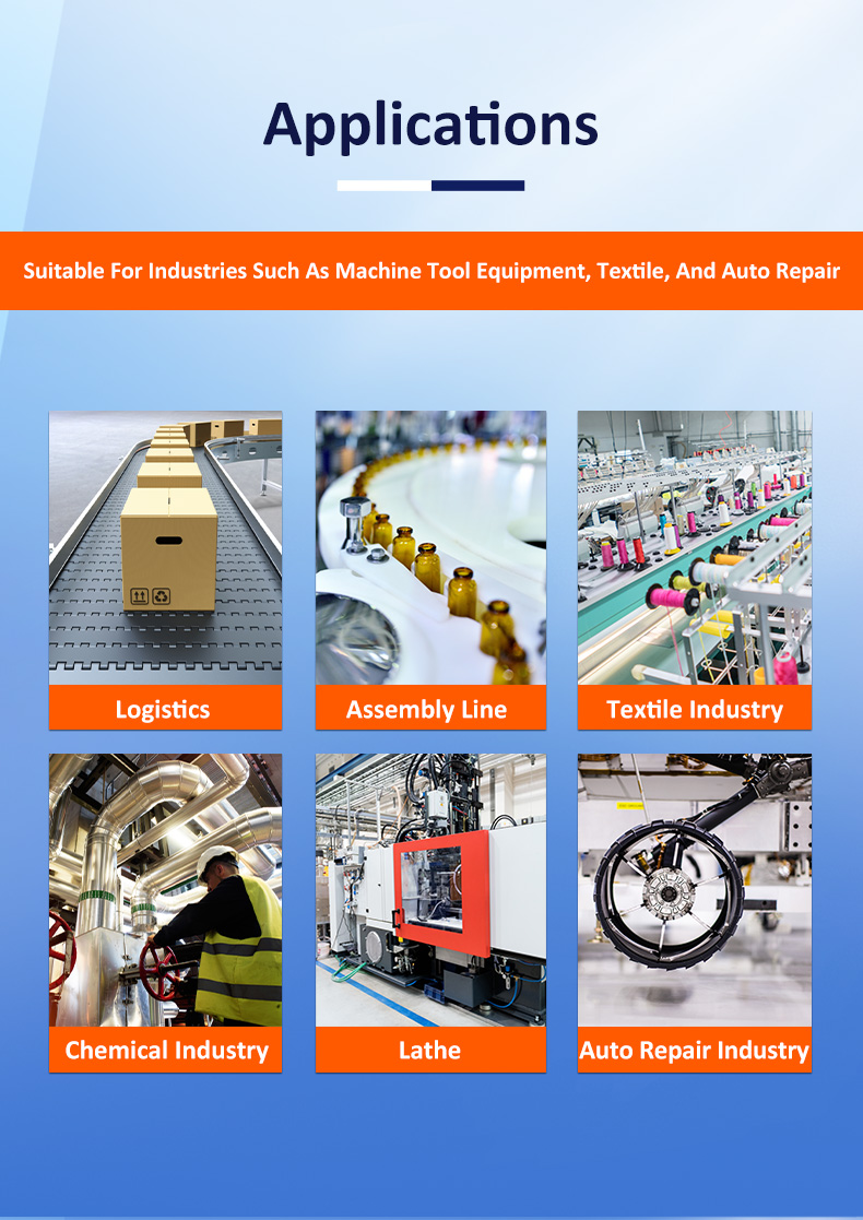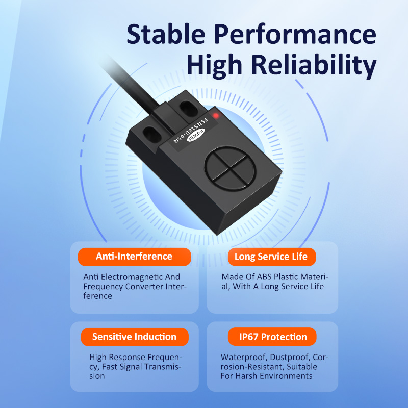 FSNS18D-05 är konstruerad för mångsidighet. Här är dess primära applikationsscenarier: Maskinverktygsutrustning och svarvar: Idealisk för verktygspositionering, revolverinriktning och avkänning av gränser för färdslut. Dess tillförlitlighet säkerställer bearbetningsnoggrannhet och skyddar dyr utrustning.Textilindustri: Används för att upptäcka garnbrott, övervaka vävstolens skyttelposition och räkna tygrullar. Motståndskraftig mot ludd och vibrationer. Bilreparationer och fordonsmontering: Perfekt för positionering av robotsvetspistoler, verifiering av delnärvaro på fixturer och detektering av klämmor och jiggar. Logistik och monteringslinjer: Utmärkt för palldetektering, sortering av objektsnärvaro och räkning av lådor på transportörer. feedback och nivådetektering i icke-aggressiva miljöer.