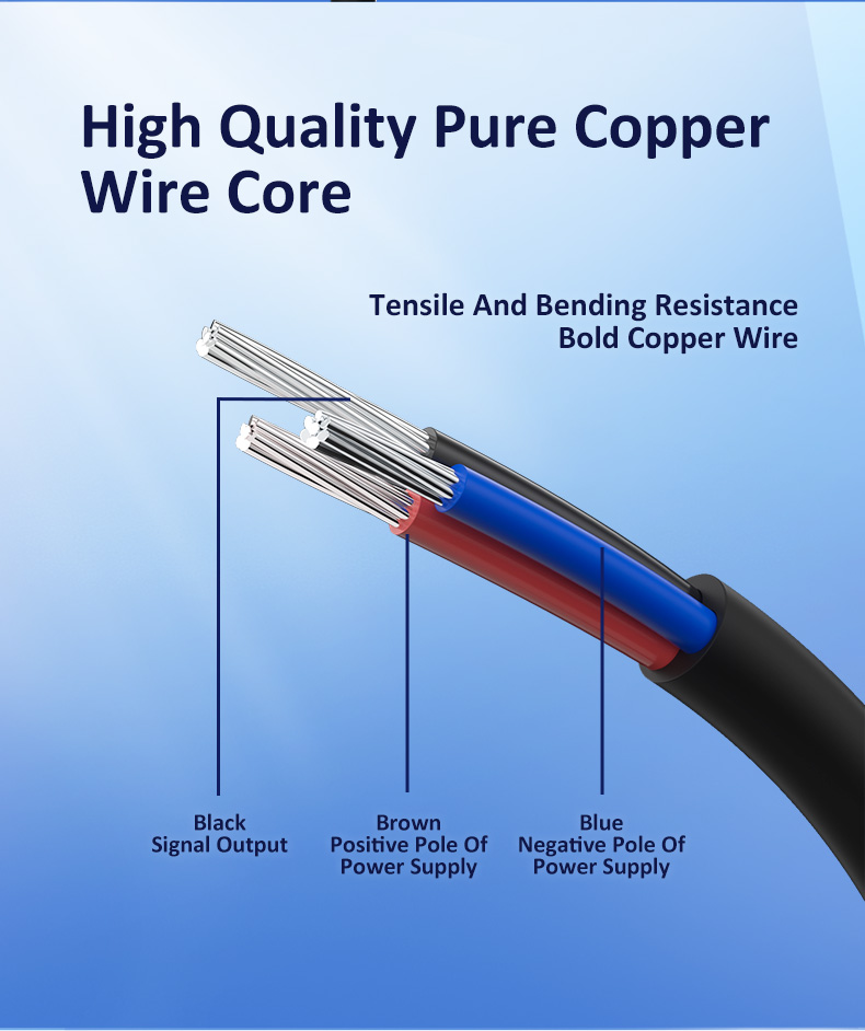 S: Ja, sensorn levereras med en förkopplad, högkvalitativ ren kopparkabel. Standardlängder är vanligtvis 2 meter. Anpassade längder finns tillgängliga på begäran.