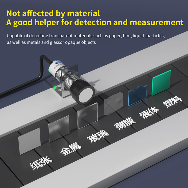 Fuwei Electronics ultraljudsavståndssensor är "Mångsidig assistent för industriell upptäckt" du har väntat på. Genom att kombinera analoga, switchande och RS485-kommunikationsalternativ, levererar den exceptionell prestanda för att enkelt hantera detekterings- och mätningsutmaningar för ett brett utbud av material – från transparenta filmer och vätskor till metaller och glas.